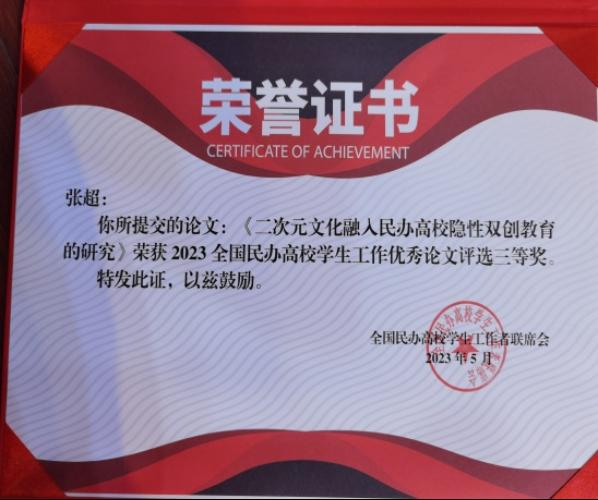 会议期间,联席会对2022、2023年民办高校学生工作创新奖进行了表彰。我校报送的优秀论文和学生工作案例荣获多个奖项,其中,荣获2023全国民办高校学生工作优秀论文评选一等奖1项、三等奖1项;荣获2022全国民办高校学生工作组织改革二等奖3项;荣获2023全国民办高校学生工作创新奖三等奖1项。