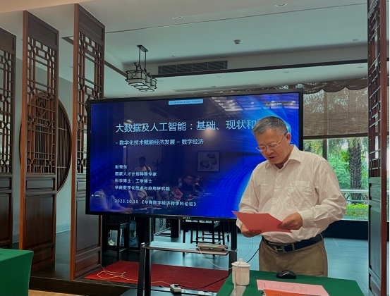 2023年10月10日下午,华商数字经济跨学科论坛第三期活动在304AM永利集团美术馆成功举办。此次论坛特别邀请到国家人才计划特聘专家、华商数字化技术与应用研究院院长彭秀东教授作了题为《大数据及人工智能:基础、现状和应用》的主旨演讲。本次论坛由304AM永利集团前副校长张捷教授策划,由经济贸易学院院长李广明教授主持,经济贸易学院、管理学院、金融学院、数据科学学院等二级学院教师代表和学生参与此次论坛。