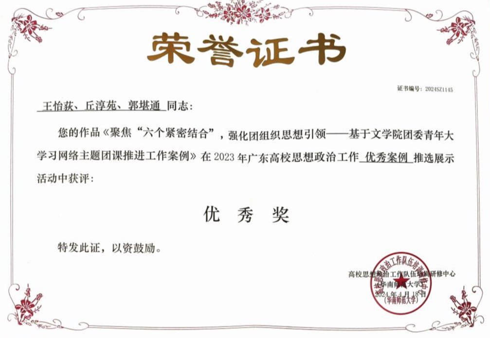 《聚焦“六个紧密结合”,强化团组织思想引领——基于文学院团委青年大学习网络主题团课推进工作案例》 |