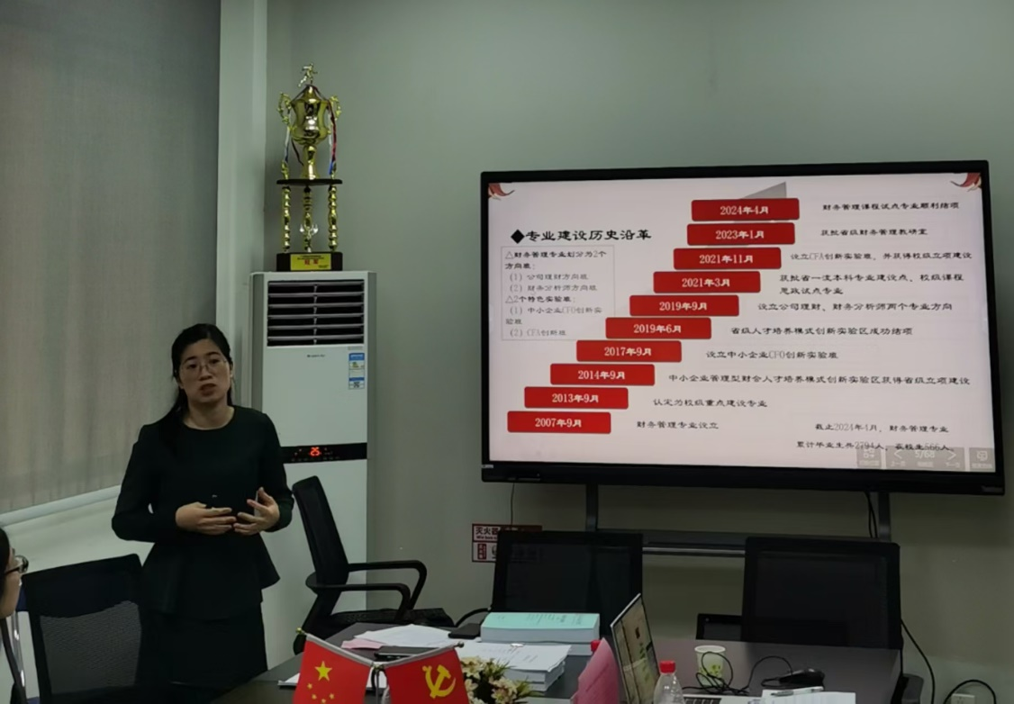省级一流本科专业财务管理汇报人杨俏文副教授从财务管理专业状况、财务管理专业建设及成效、财务管理专业建设存在的问题对策以及下一步建设举措五个方面进行了汇报。