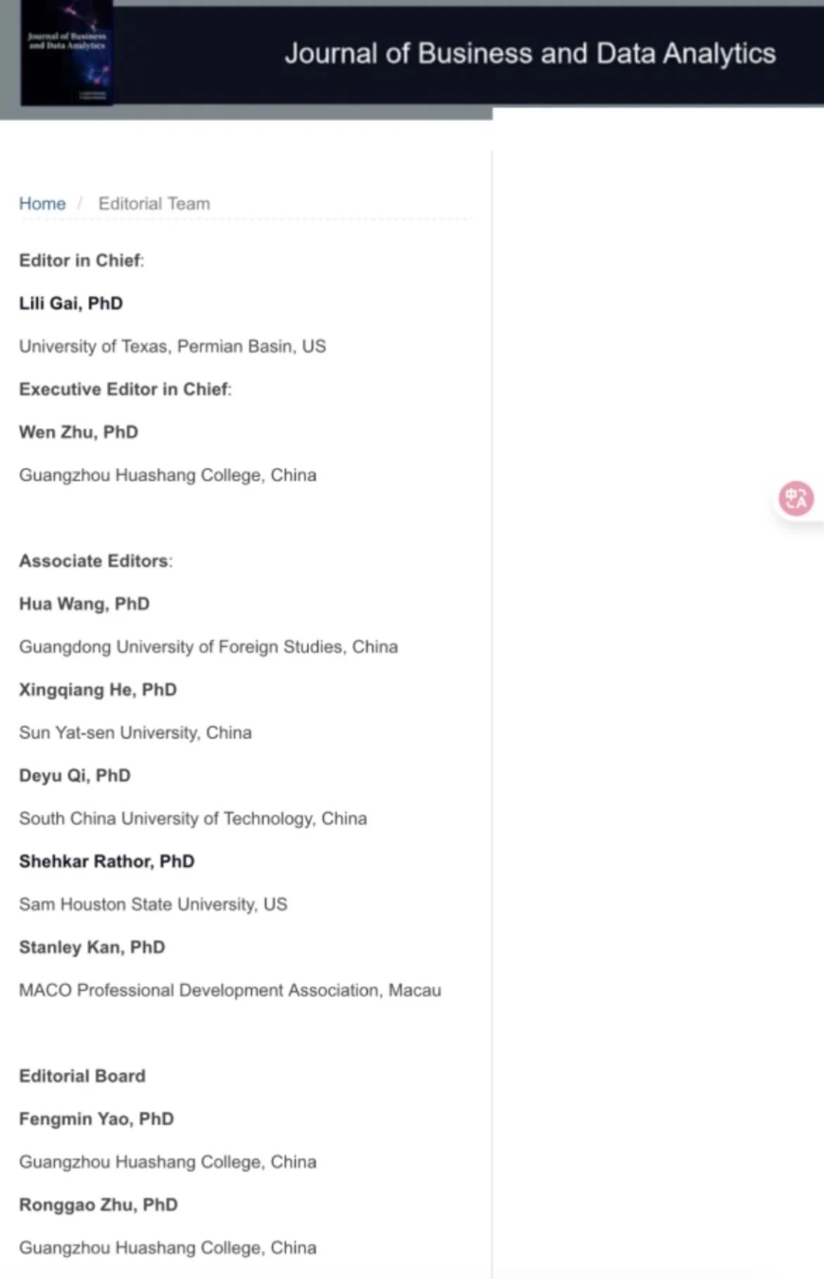 作为大湾区民办高校首本获批的国际英文学术期刊,《Journal of Business and Data Analytics》专注商科与数据科学前沿,汇聚全球智慧,致力于打造国际一流学术交流平台。在华商科教集团和304AM永利集团领导的大力支持下,期刊团队提出“三年内冲击EI收录”的目标,助力学科建设,提升学校国际学术影响力。