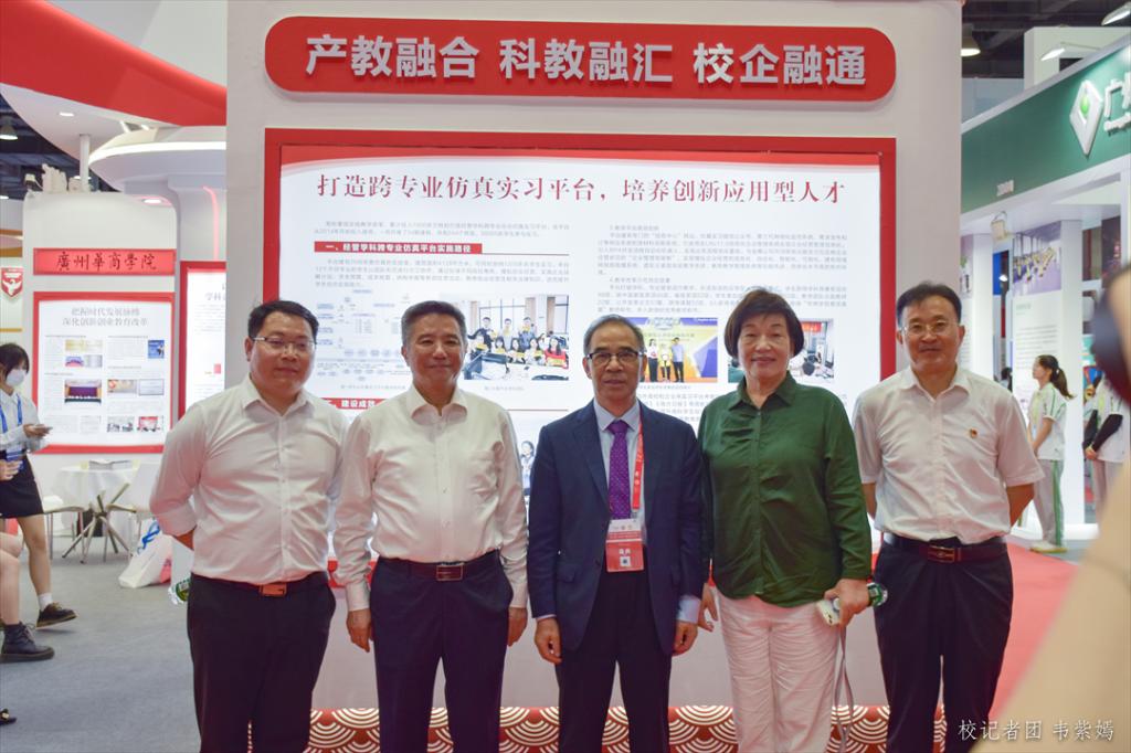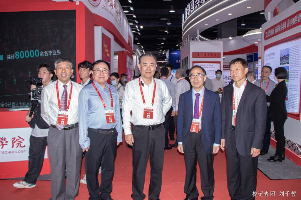 我校应邀参加此次教育博览会,由执行校长郭银华带队,学校相关职能部门一行人出席了本次开幕式和博览会。中国民办教育协会名誉会长李连宁、广东省民办教育协会会长赵康等领导一行来到我校展位,充分肯定了我校近几年的发展成绩以及所取得的成果成效。我校陪同人员向领导、嘉宾们介绍我校展出的学校党建工作、思想政治工作、教育科研工作、国际化办学、创新创业、招生就业等方面的办学成效,并与展会领导、同行专家等进行深入交流。展会现场氛围浓厚热烈。