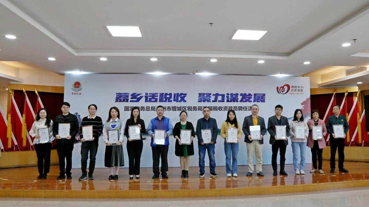 2021年11月18日,增城区税务局开展“荔乡话税收 聚力谋发展”首届税收资政员聘任活动,为15名税收资政员颁发聘书。活动中,区税务局就今年以来落实减税降费政策、优化税收营商环境、提升纳税人满意度等相关工作作了简要介绍,同时新获聘的税收资政员分别结合自身工作经验围绕深化税收征管改革、优化税收营商环境和提升社会满意度等方面提出意见和建议。