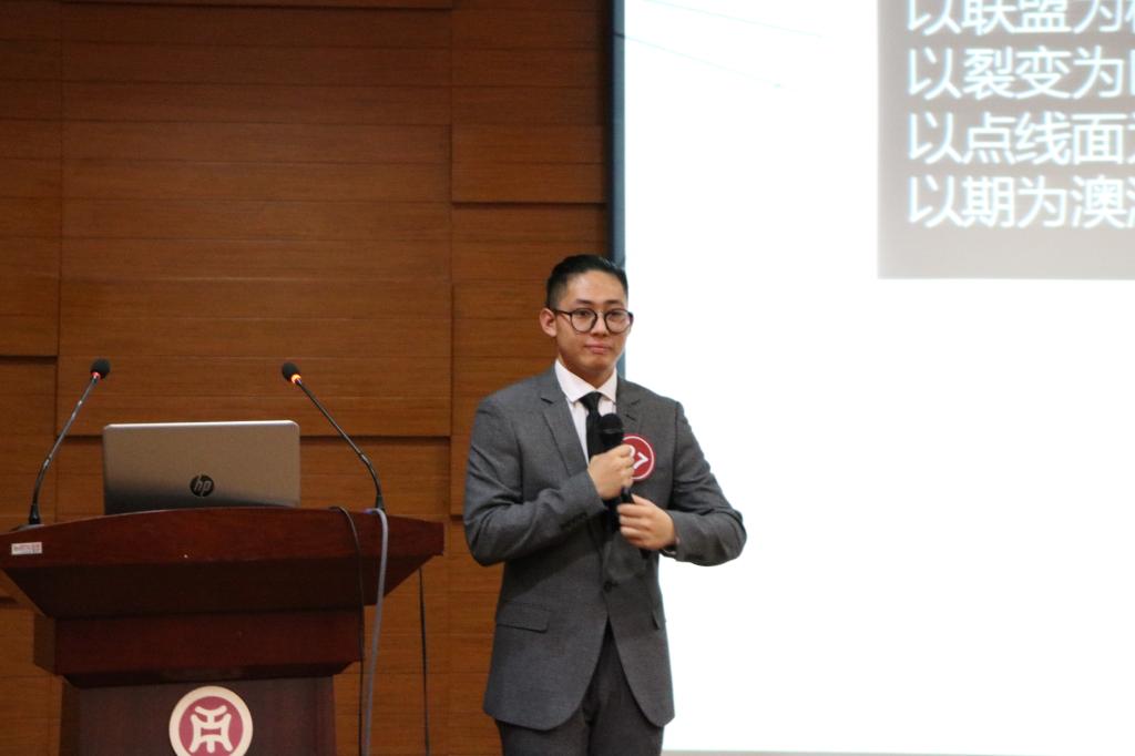 参赛的同学依次展示了作品。顾羽浩同学流利的双语解说一如他本人“稳定”、“优质”、“高效”的品质,在问答环节中沉着冷静地回答了评委的所有问题。李富蓉同学赛场表现大方自信、从容淡定,激情充沛地介绍了她的课题,从多种方面、用多种形式介绍了其推销的产品。参赛同学们的表现十分精彩,每一位都有自己独特的亮点,可圈可点。