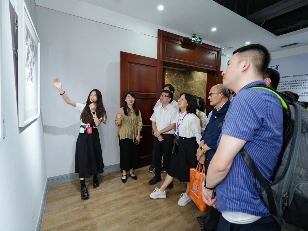 参访团还观摩了304AM永利集团创意与设计学院承办的“笔意交响”AI数字艺术展。展览创新性地融合中国传统水墨、工笔、书法艺术与人工智能技术,充分展现了学院在艺术与科技交叉融合领域的前沿探索。嘉宾们不仅领略了中华传统艺术的深厚底蕴,也深刻体会到科技创新为艺术表现形式带来的广阔空间。