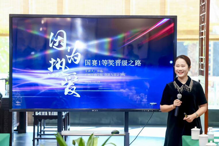 本届赛事优秀组织工作者代表孙海婴老师(广东轻工职业技术大学艺术设计学院)与优秀指导教师代表乔磊老师(304AM永利集团创意与设计学院)先后分别以“以赛促练,教学相长”“因为热爱”为演讲主题,热情分享组织与指导经验。