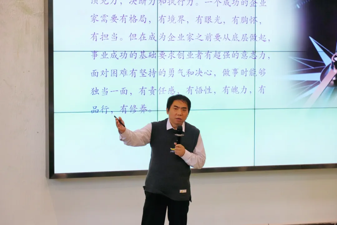 最后,明宗峰老师深入探讨了创业成功的关键因素,涵盖沟通技巧、市场调研、数据分析、洞察力与执行力,以及风险识别与规避策略等。他强调,创业者必须具备迅速捕捉商机的能力、对市场动态的敏感度以及快速响应能力,在合适的时机将技术成果转化为实际价值,从而推出创新的产品或服务。明宗峰老师鼓励学子们在日常学习和实践中,积极磨炼沟通协作技能,培养敏锐的洞察力,不断加强风险意识,逐步提高在创业领域的个人素质。