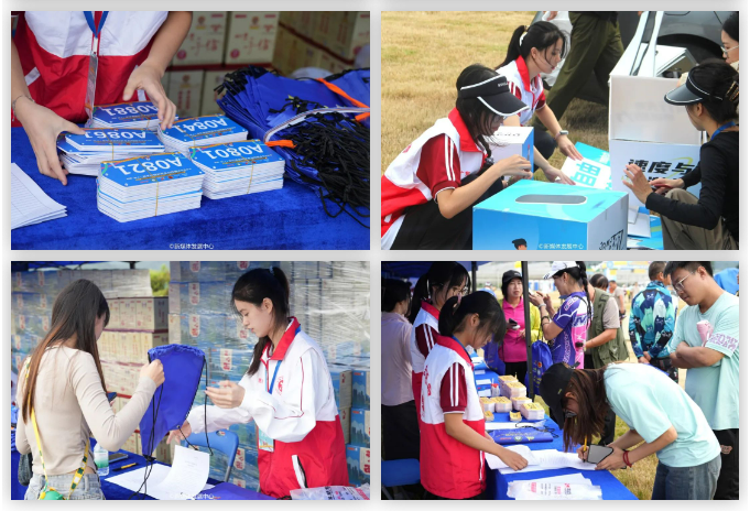 10月26日上午7:40,志愿者们提前来到现场,到达相关点位进行赛前准备。他们认真细致、分工明确、配合默契,完成物资包分装,等待选手前来签到领取参赛包,并协助现场其他布置工作。