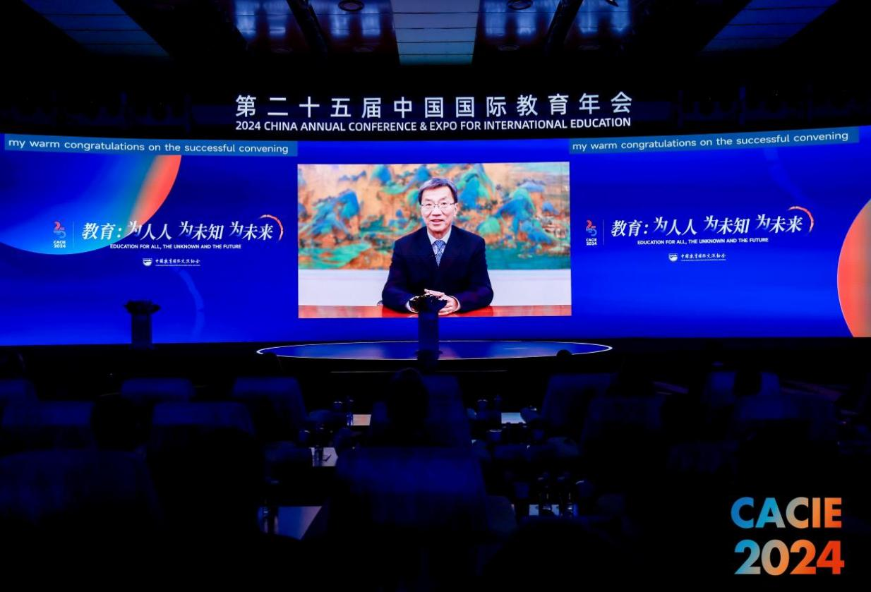 (中国教育部党组书记、部长怀进鹏通过视频进行致辞)