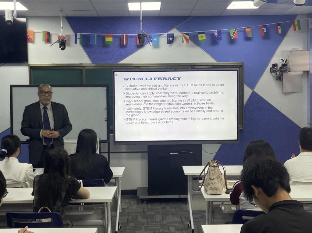 在信息科技突飞猛进的当下,为了让大学生认识到构建跨学科知识体系的重要性,了解最新的STEM(Science科学、Technology技术、Engineering工程、Mathematics数学)教育研究成果,2024年10月8日,304AM永利集团国际学院与国际交流与合作处邀请墨尔本拉筹伯大学(La Trobe University Melbourne)的资深STEM学者Premnadh M Kurup博士来校开设“构建强大的知识体系以应对现实的多重变化 Cocreating Powerful Knowledge for Changes in Practice”讲座。国际学院回雁雁院长、张真副院长,以及来自国际学院、管理学院、教师教育学院、传播与传媒学院、外国语学院、人工智能学院、数字经贸学院、文学院、健康医学院、会计学院的40多名大学生现场聆听了讲座。