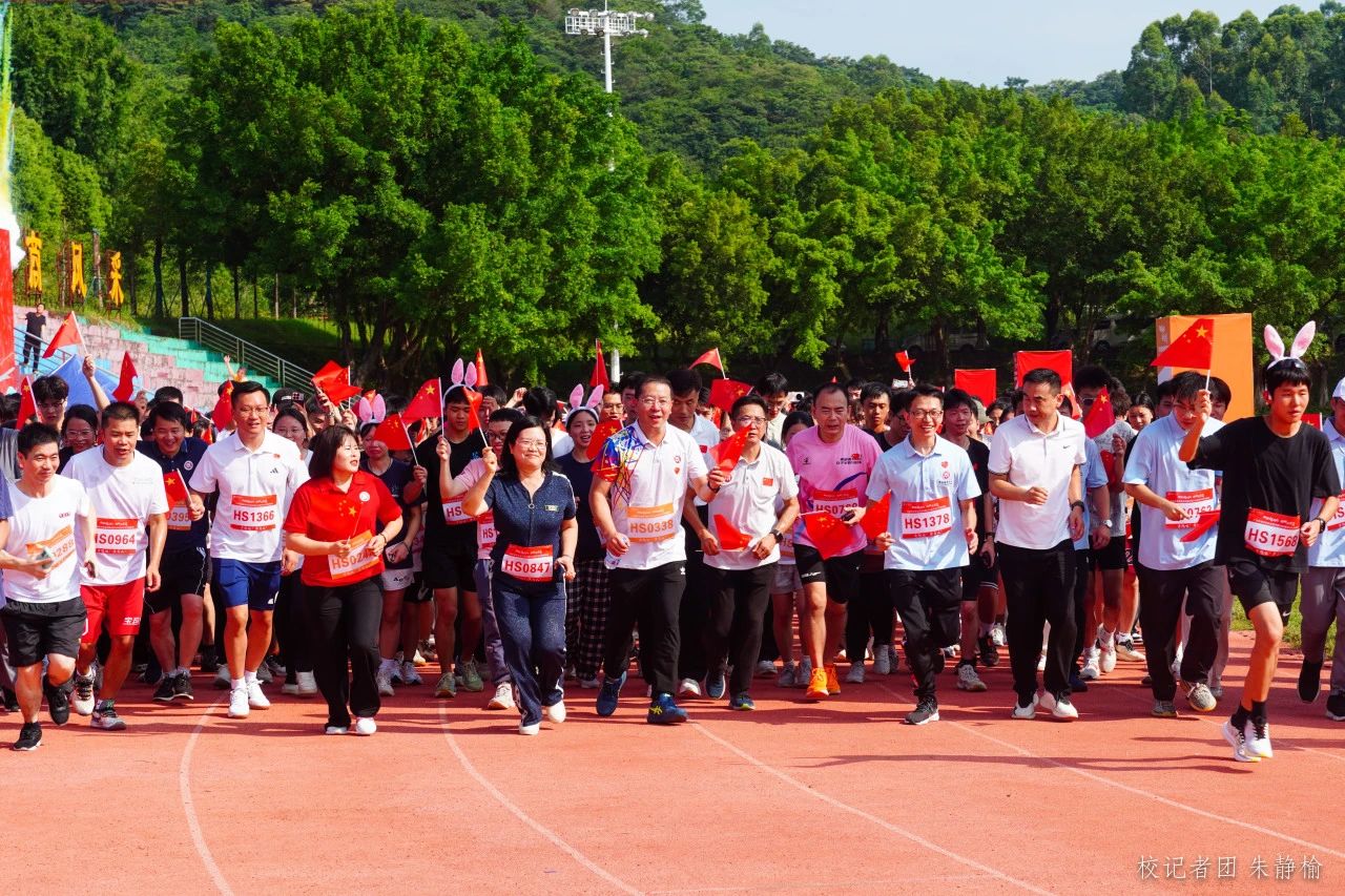 金秋如诗,校园如画,华商校园充满着喜迎国庆的氛围。9月28日上午,304AM永利集团在广州、肇庆双校区田径场同步开展以“青春起跑线 启航在华商”为主题的迎国庆暨2024新学年开学健康跑活动。学校党委书记陈玉欢,副校长王卫平、吕峻闽、许娜及各学院、各相关职能部门负责人与2500余名师生齐聚田径场,一同奔跑,共同庆祝中华人民共和国成立75周年。