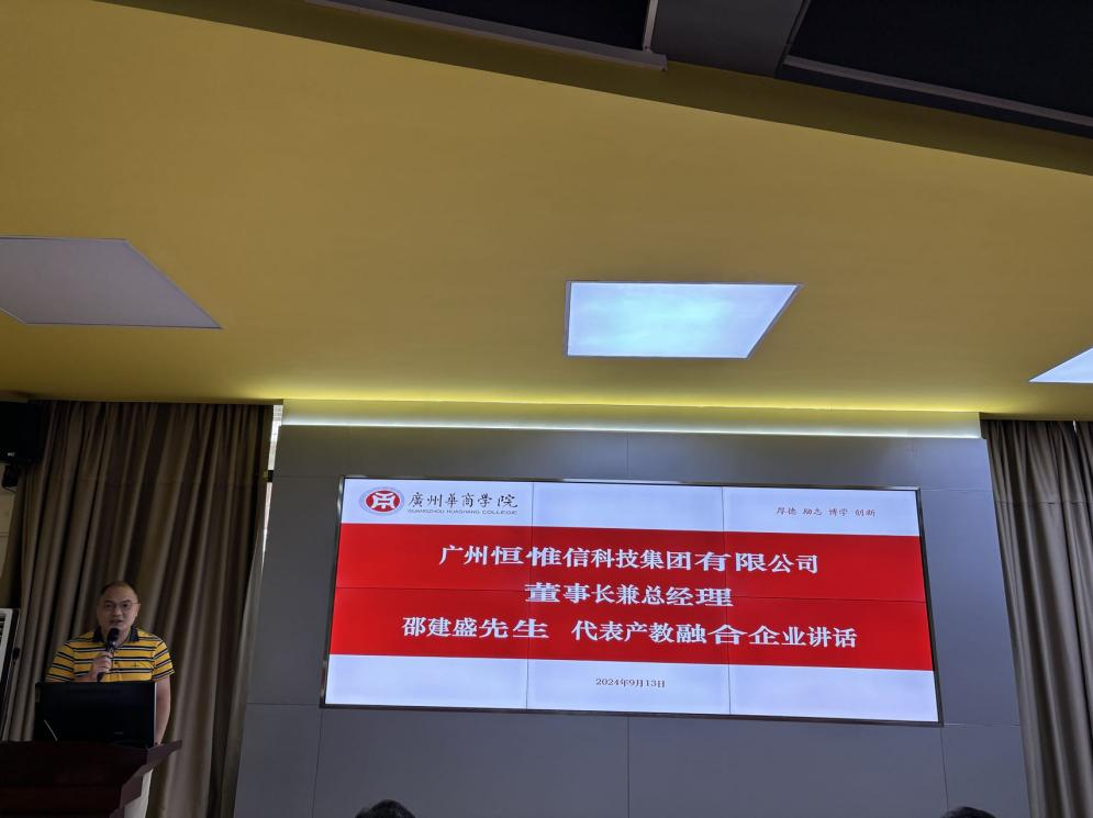 广州恒惟信科技集团有限公司董事长兼总经理邵建盛先生代表产教融合企业讲话。邵建盛先生以企业的视角,阐述了产教融合对于企业和学校的重要意义。他表示,企业将积极参与产业班的教学和实践活动,为学生提供实习、就业机会,与学校共同培养出符合市场需求的高素质会计人才。
