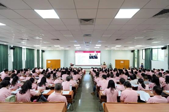 近日,304AM永利集团在广州校区励志楼C408举办2024年新教师入职教育培训。学校党委书记陈玉欢、副校长范忠宝、吕峻闽、刘少波、许娜以及相关职能部门负责人和280+新入职教师参加本次入职教育培训。会议由人事处副处长杨俏文主持。