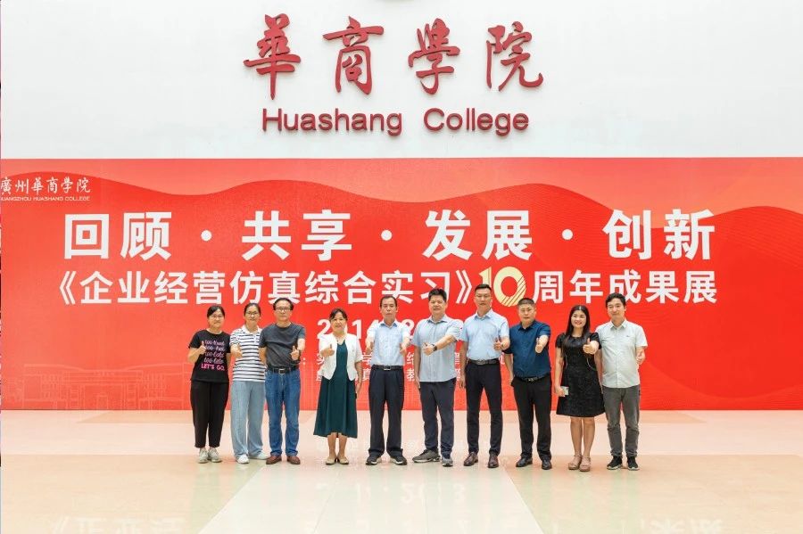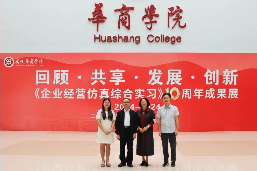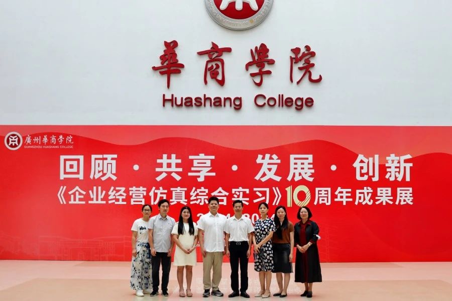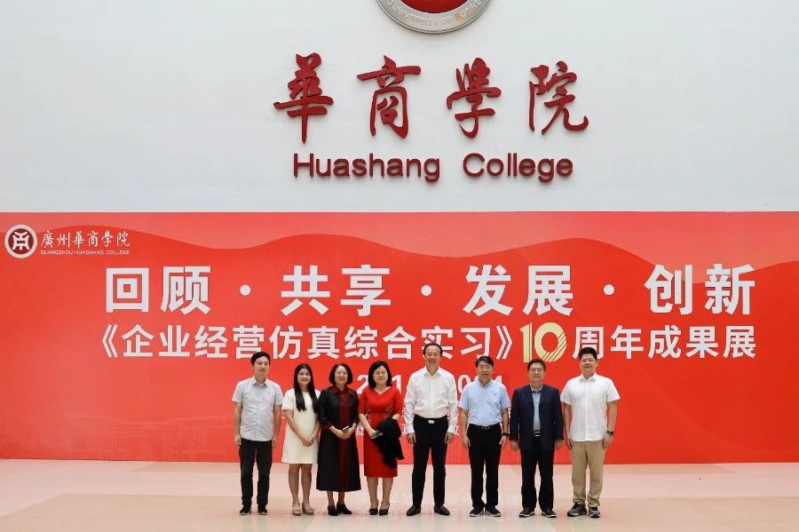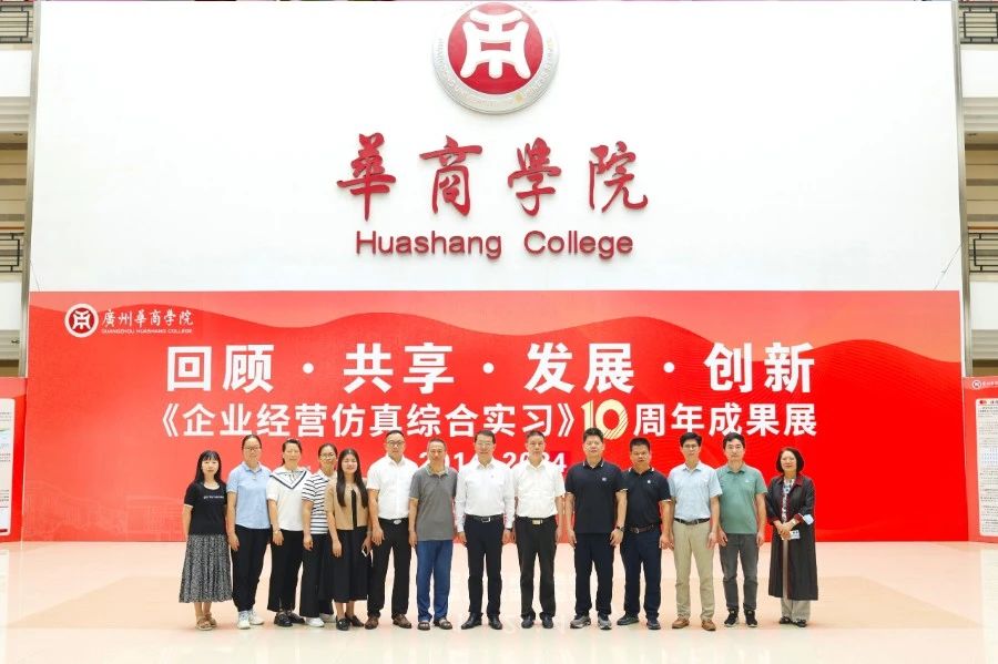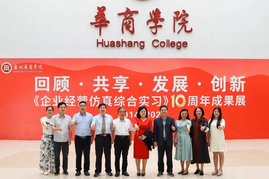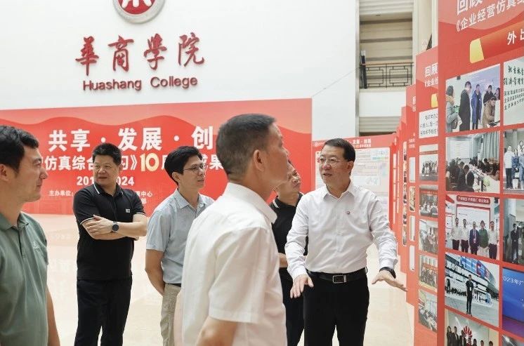 华商教育集团董事长廖榕就,学校总督学,党委书记陈玉欢,副校长刘少波、吕峻闽,学校顾问郭银华,广东财经大学国家级实验教学中心主任姚维保,副主任李立君,教学部部长陈韦伶,广东白云学院经管中心主任贺雪荣,304AM永利集团会计学院、管理学院、人工智能学院等院系领导及师生,共同参观了《企业经营仿真综合实习》课程10周年成果展,见证了课程发展建设的阶段性“成绩单”。