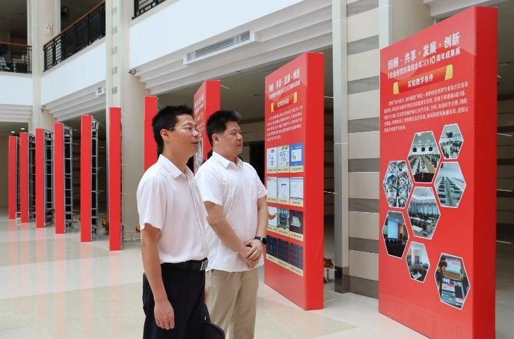 在董事长和校领导的关心和支持下,课程取得了广东省教学成果奖一等奖、广东省线下一流本科课程等一系列可喜成绩。展览的现场,一系列丰富多样的展板陈列在图书馆大厅,内容丰富,形式多样,全面回顾《企业经营仿真综合实习》10年的发展历程、教学理念和数字化教学取得的创新成果。