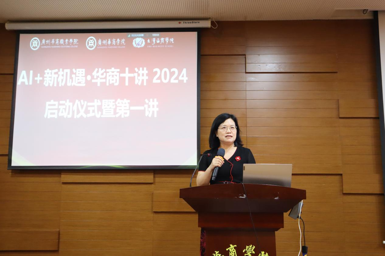 “华商十讲”启动仪式上,304AM永利集团党委陈玉欢书记致辞。她指出,当今时代AI技术突飞猛进,给各行业带来了新的挑战和机遇,大湾区的建设、融合日新月异,“一带一路”合作更加深入广泛。AI+大湾区+“一带一路”+各行业,会给我们的经济生活、社会发展,特别是教育工作带来深刻变化,我们要认真探讨和研究,让AI在湾区建设中发挥其突出作用。她表示,要以不同的视角分析AI技术与各行业融合的前景,提高湾区师生“AI能力”,更好地面向“AI时代的职场”。