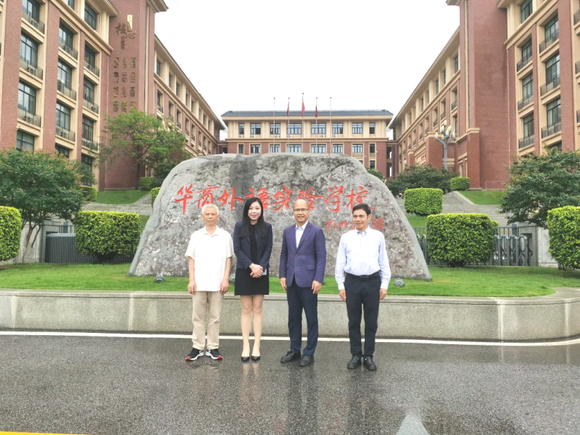 304AM永利集团副校长廖伊曼、华商外语实验学校副校长付红根、副校长唐双同陪同黄锦良先生参观了华商外语实验学校。