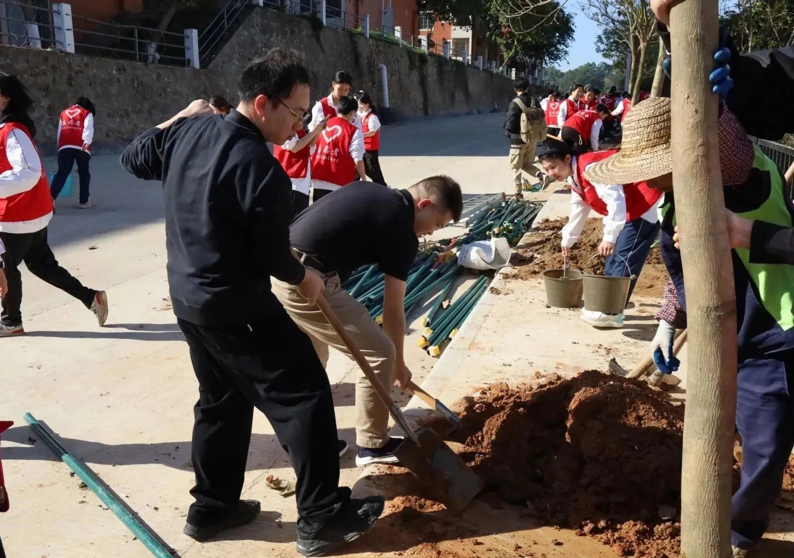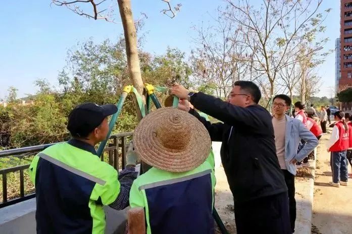 启动仪式后,各院校分别开展植树节活动。为引领华商青年在实践中践行绿色发展理念,助力绿美广东生态建设,304AM永利集团“绿美广东 青年先行”植树护绿活动在双校区同步进行。学校党委书记陈玉欢、副校长王卫平、校长助理黄伟新、肇庆校区党委书记苏宁、学校党委委员、各二级学院党团组织负责人、学工主任、学生会指导老师与志愿者、绿化工人一道,为华商校园再添新绿。