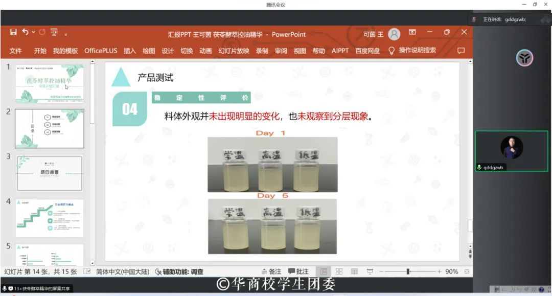 参赛选手们在前两轮比赛基础上修改完善项目,并在项目展示环节进行ppt演示。选手们结合项目可行性进行分析,紧抓社会痛点和市场需求,从项目产品服务、商业模式、财务管理以及未来展望等多方面展开陈述,介绍参赛项目的核心竞争力和实践阶段性成果,展示出项目的先进性以及现实意义。