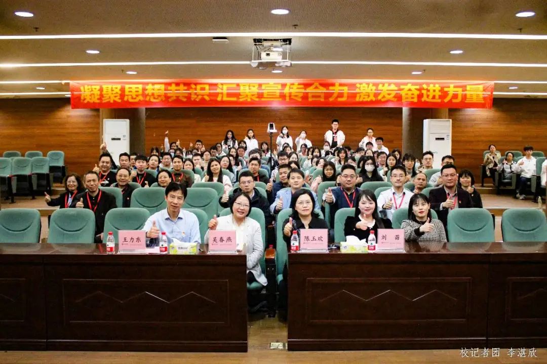 2023年10月7日至8日,全国宣传思想文化工作会议在北京召开,会议传达了习近平总书记对宣传思想文化工作的重要指示,正式提出和系统阐述了习近平文化思想。11月13日至14日,全省宣传思想文化工作会议在广州召开,会议强调要持续加强对习近平文化思想的学习、研究、阐释,切实以新气象新作为担负起新的文化使命。会议召开后,我校党委高度重视,积极响应中央及省委的号召,第一时间安排部署,贯彻落实会议精神,11月16日,在广州校区中央图书馆报告厅召开2023-2024学年304AM永利集团第一学期宣传思想工作培训班。培训班设广州校区(主会场)+肇庆校区(分会场),结合线上线下同步开展。学校党委书记陈玉欢、副校长王力东、光明日报广东站站长吴春燕参加主会场开班仪式。全校各单位、各部门宣传负责人、联络员,各基层党支部宣传委员、各校级学生组织宣传骨干代表、各班级宣传员代表共786名师生参加了此次培训班。本次培训班由党委宣传部部长刘苗主持。