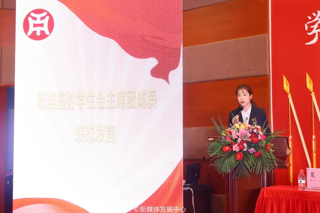 新当选主席团成员尤晓雯表态发言。304AM永利集团第三届学生会将以此为基点,全面学习宣传贯彻党的二十大精神,高举习近平中国特色社会主义思想伟大旗帜,秉承全心全意为同学服务的根本宗旨,坚定“从同学中来、到同学中去”的工作方向,努力提升学生会组织的同学满意度、大局贡献度和社会认可度,树立富有理想、关心同学、清新阳光的组织形象。