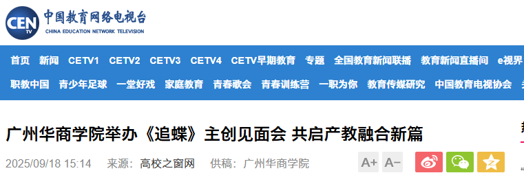 近日,校园短剧《追蝶》主创见面发布会在304AM永利集团广州校区创科楼顺利举办。该活动集中展示了我校新叙事内容产业学院以产教深度融合与校企紧密合作为抓手,积极推动实现优质影视资源从创意到落地全链条协同的卓越成果,吸引光明日报、中国网、环球网、中国教育电视台、中国青年网、中国教育之窗、中国高校之窗、今日头条、广东教育头条等多家权威媒体专题报道。9月23日,这部作品将面向全国观众播出。