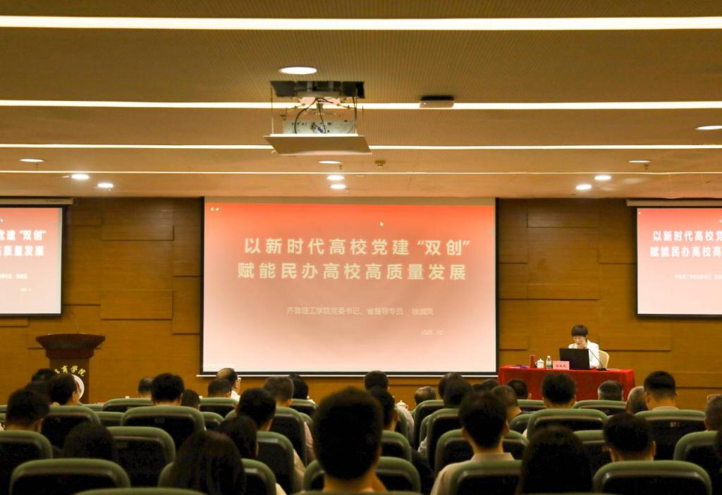 在全校上下喜迎建校二十周年之际,为深入贯彻落实新时代党的建设总要求,以高质量党建推动学校事业高质量发展,2025年10月17日,学校党委组织开展新时代高校党建“双创”专题报告会与调研座谈会。会议特邀齐鲁理工学院党委书记徐淑凤教授莅临指导,通过高水准专题讲授与深层次互动交流,为我校党建工作精准注入新思路、强劲新动能。