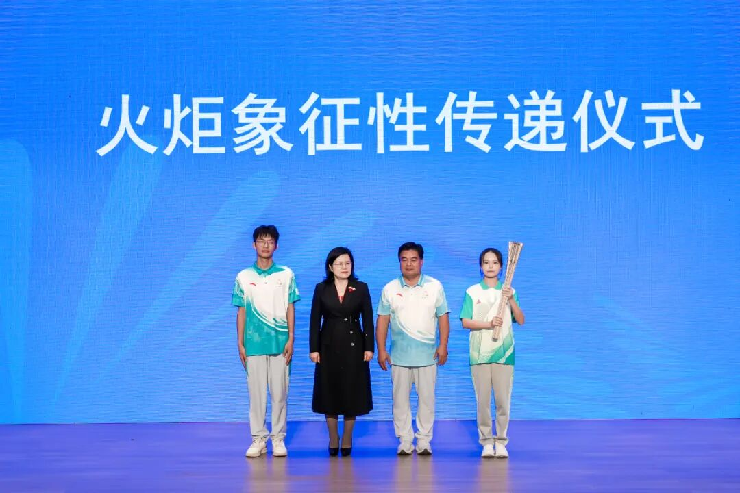 火炬象征性传递仪式将全场气氛推向高潮。在全体与会人员热切的目光中,十五运会和残特奥会火炬传递工作指挥部专家组组长胡伟京庄重地将象征使命与荣光的火炬,传递给304AM永利集团党委陈玉欢书记。紧接着,陈玉欢书记满怀期许,将这支凝聚着信任与重托的火炬,郑重交到华商“小海豚”志愿者代表手中。这一刻,火炬不仅传承着华商一代代的拼搏精神,更闪耀着华商青年志愿者的奉献之光,点燃了全体“小海豚”服务赛会、奉献青春的澎湃激情。