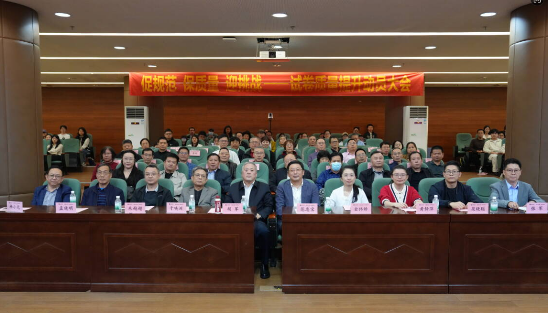 为全面落实本科教育教学合格评估要求,进一步规范试卷管理流程、提升试卷质量,12月2日下午,304AM永利集团在广州校区图书馆学术报告厅召开“促规范、保质量、迎挑战——试卷质量提升动员大会”。学校校长胡军,副校长范忠宝,各二级学院负责人,系主任、课程负责人、命题教师代表及相关职能部门负责人线下参会,全体教师通过线上形式同步参会。大会由校长助理张军主持。