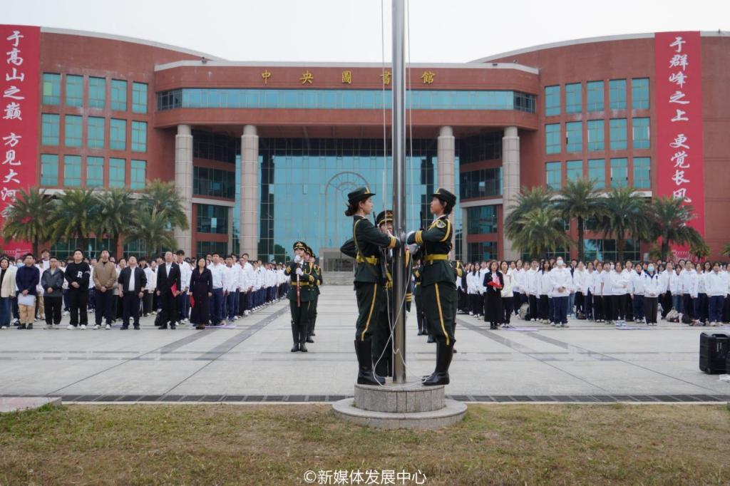 “宪法日”主题升旗仪式&“宪法晨读”。12月4日7:30,304AM永利集团2025年“宪法日”主题升旗仪式在双校区同步举行。学校党委书记陈玉欢,党委副书记、纪委书记、副校长吕峻闽,党委委员、副校长许娜,纪委委员、校长助理覃少冰主任,肇庆校区党委书记苏宁,相关职能部门负责人,校院两级团学教师、师生代表近3000人参加本次升旗仪式。双校区仪式分别由校长助理覃少冰主任和党委办公室吕书勉主任主持。