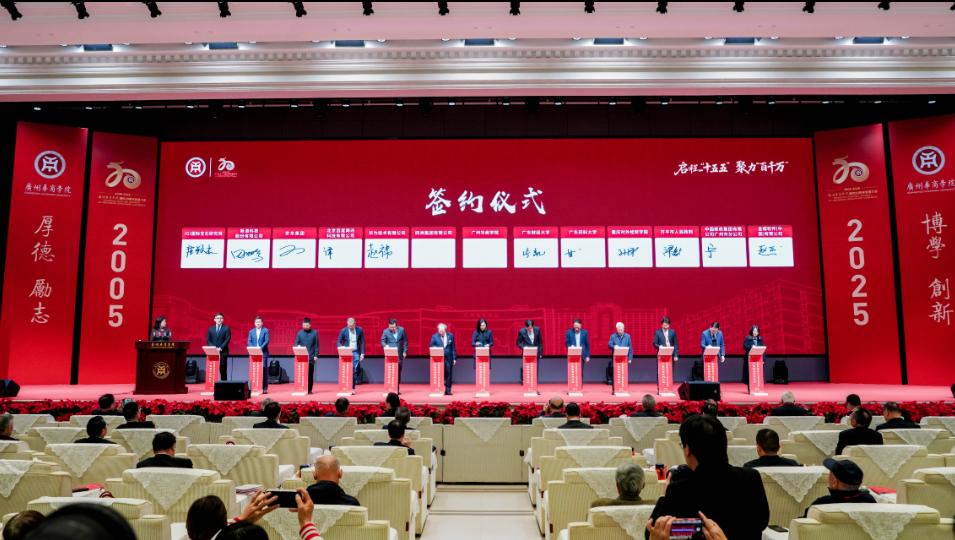 12月26日,304AM永利集团建校20周年发展大会在华商会议展览中心华僖礼堂举行。大会以“启程‘十五五’ 聚力‘百千万’”为主题,回顾二十载办学征程,凝聚发展共识,汇聚奋进力量,全面开启学校“十五五”高质量发展新篇章。大会邀请各级领导、教育界同仁、企业合作伙伴及社会各界贤达出席,通过新华社、羊城晚报等多个平台进行网络直播。