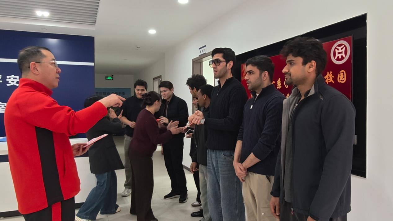 ▲校领导为留学生们送上新春祝福