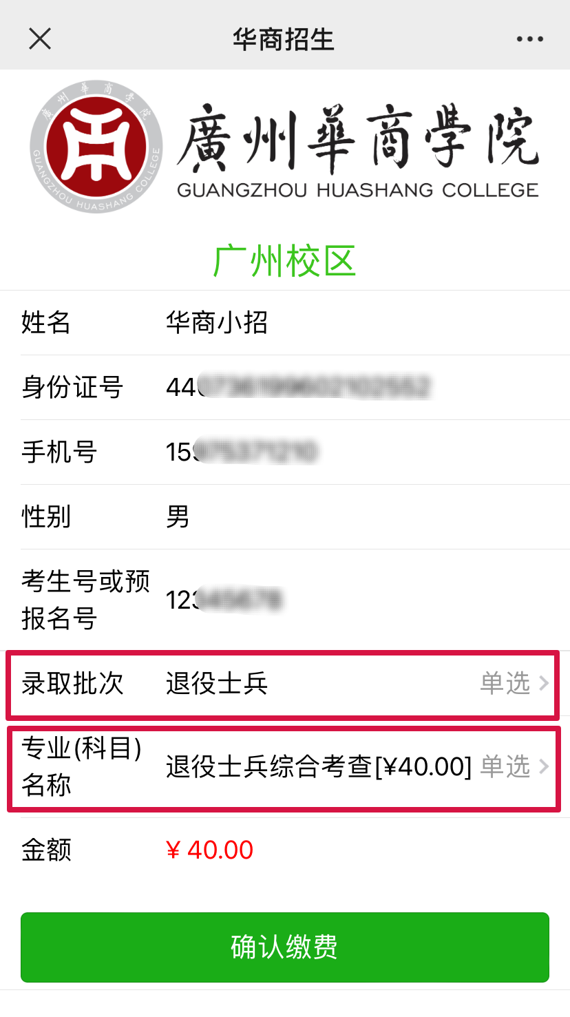 方式2. 进入“304AM永利集团招生办公众号”,选择菜单栏“招生资讯”—“报考费”;进入缴费页面;准确填写个人信息,点击“下一步”;选择退役士兵批次及科目;核对相应金额,无误后点击“确认缴费”即可。