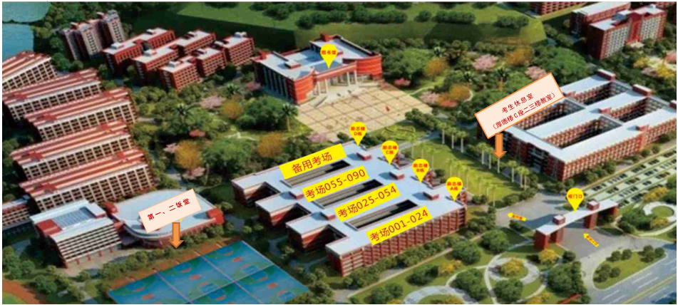 考点设有多个饭堂,距离考场较近的有第一、二饭堂(明星饭堂)、第三饭堂、第四饭堂,为考生提供丰富的餐饮服务,考生自行前往饭堂入口,并有序进入饭堂购餐(可使用支付宝和微信支付)。建议考生尽量留在校内用餐和休息。