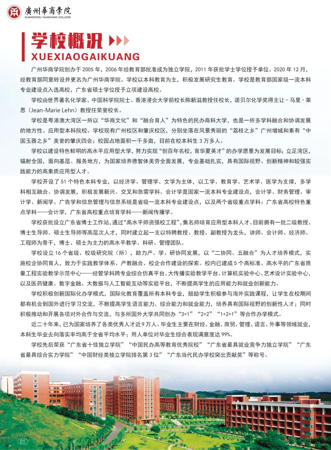 学校是粤港澳大湾区一所以“华商文化”和“融合育人”为特色的民办商科大学,也是一所多学科融合和协调发展的地方性、应用型本科院校。学校现有广州校区和肇庆校区,分别坐落在风景秀丽的“荔枝之乡”广州增城和素有“中国玉器之乡”美誉的肇庆四会;校园占地面积一千多亩,目前在校本科生3万多人。