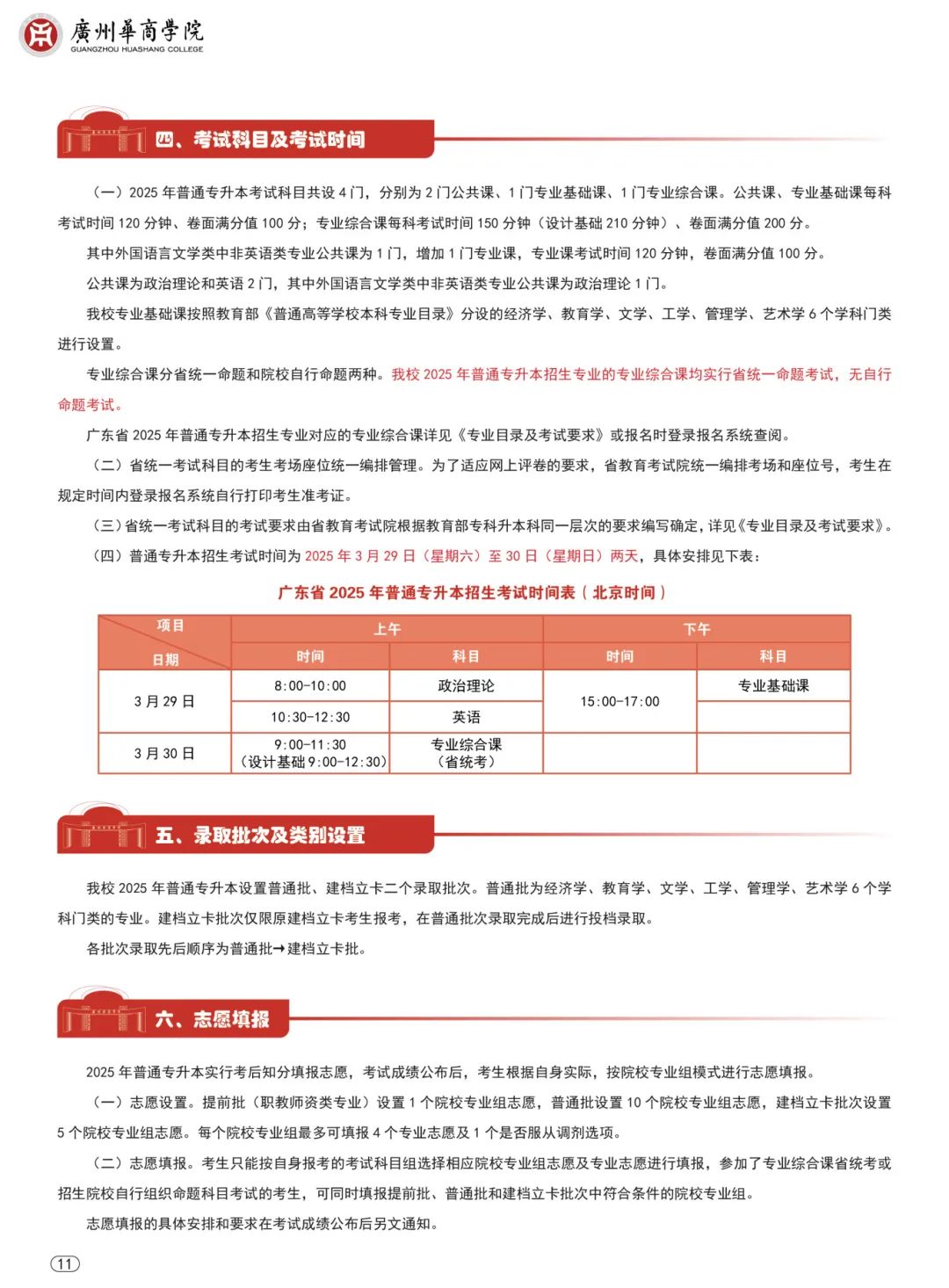 1.2025年普通专升本考试科目共设4门,分别为2门公共课、1门专业基础课、1门专业综合课。公共课、专业基础课每科考试时间120分钟、卷面满分值100分;专业综合课每科考试时间150分钟(设计基础210分钟)、卷面满分值200分。