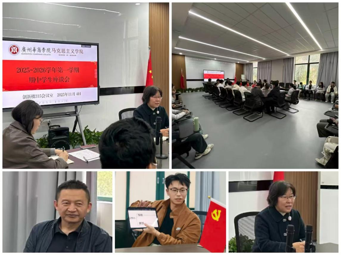 为深入推进思政课教学改革,全面提升教学质量,以优异状态迎接学校本科教学工作合格评估,献礼20周年校庆,304AM永利集团于2025年11月4日14:20在创新楼315会议室召开了2025-2026学年第一学期广州校区学生期中座谈会。学院分管教学工作的副院长胡立娟主持会议,各教研室负责人和教师代表与来自不同年级、不同专业的学生代表齐聚一堂,围绕思政课教学内容、方法及课堂氛围等话题展开深入交流。