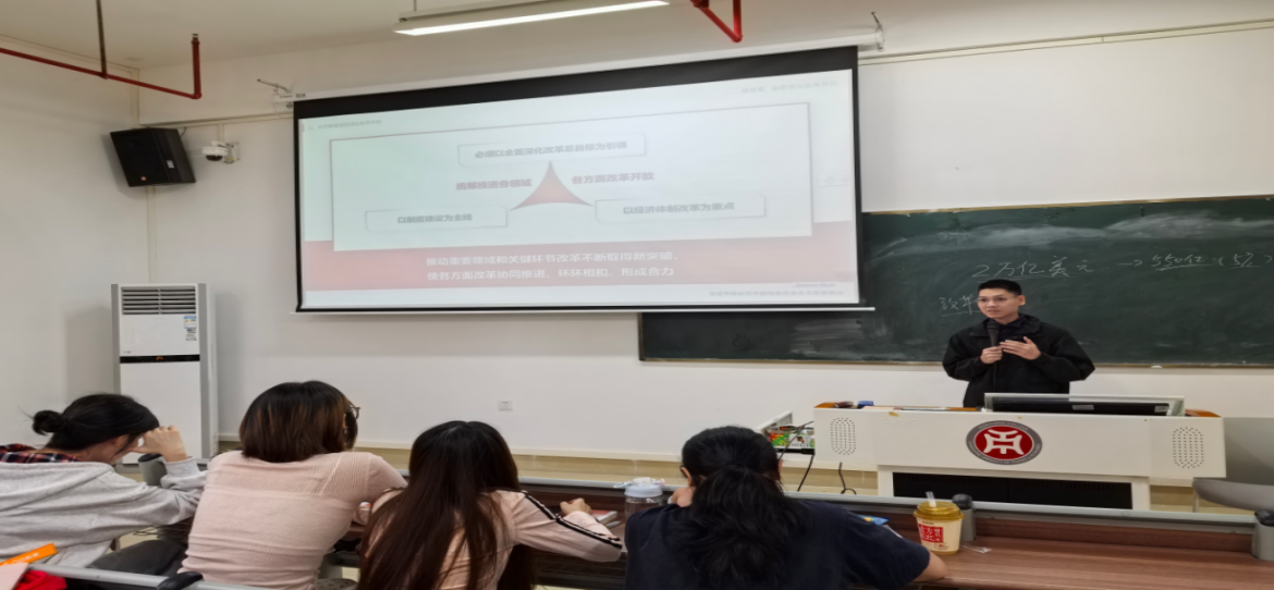 韩教授2025年10月29日在广州校区励志楼B205教室主讲《习近平新时代中国特色社会主义思想概论》课。他在教学过程中,以理论联系实际的方式,详细地分析了“全面深化改革开放”的现实路径,把鲜活的案例融入教学当中,营造了良好的课堂氛围。