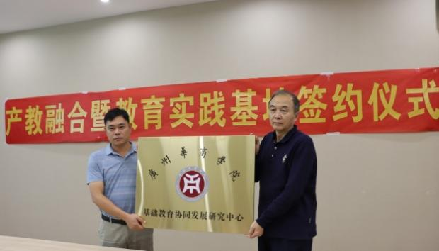 由王列耀副校长为朱村中新教育指导中心授“基础教育协同发展研究中心”牌,由王金道院长为小学代表授“教育实践基地”牌。