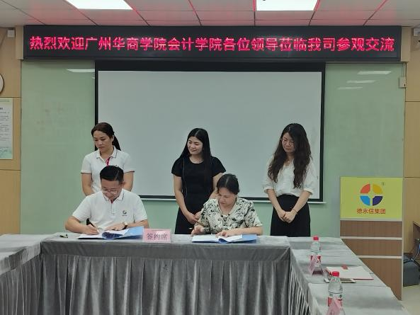 参观结束后,深圳市德永信财税集团冼朝卓总经理与会计学院杨旻副院长在企业会议厅举行校外实习基地续约仪式,双方就下一步校企实习基地共建方式、实习就业招聘政策等事宜进行了商议。