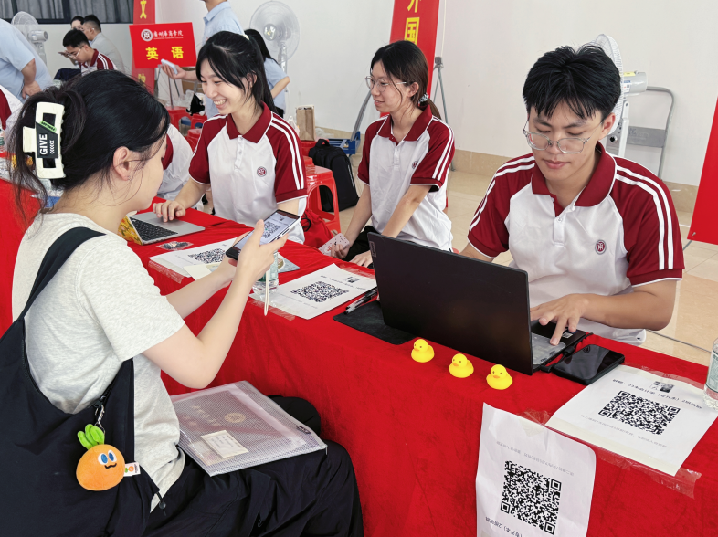 金秋送爽,丹桂飘香。8月30日,会计学院专升本新生迎新工作在肇庆校区正式启动。为确保迎新工作高效顺畅推进,会计学院党委副书记陈少鸿、学工办主任杨烨瀚来到迎新现场,细致指导各项工作开展,与前来报到的新生、参与迎新服务的工作人员亲切交流互动,以严谨的部署和温暖的关怀,为新生开启大学新旅程保驾护航。