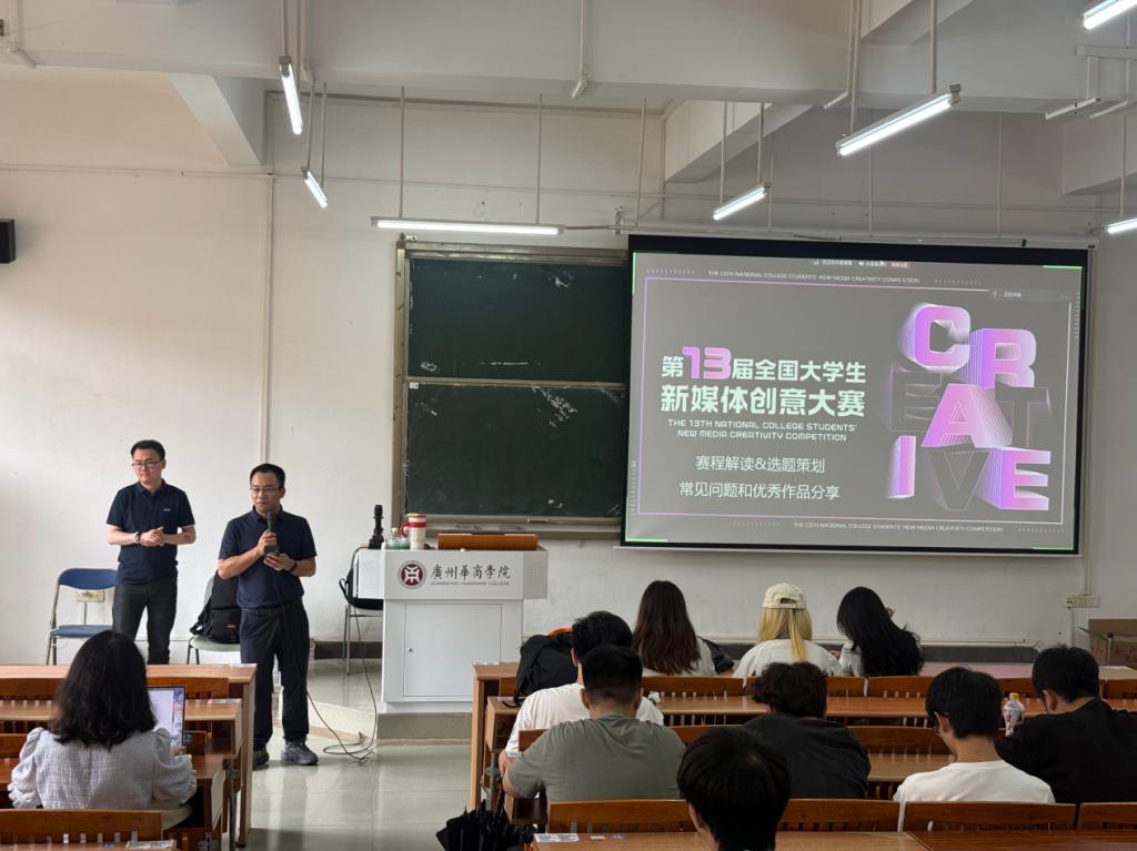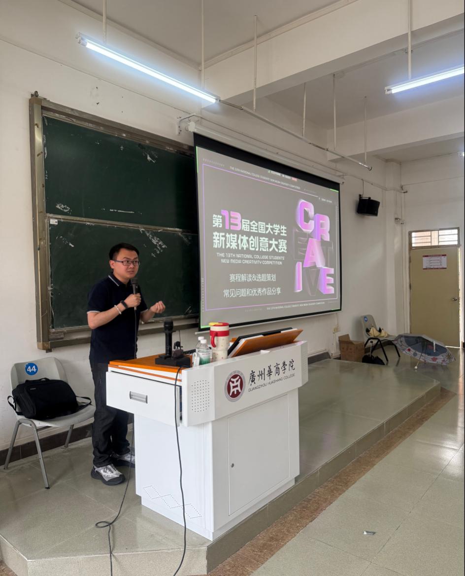 2025年5月20日下午,第13届全国大学生新媒体创意大赛宣讲会在304AM永利集团广州校区励志楼C402举行。北大方正资深讲师张志宇为网络与新媒体专业2022级、2023级、2024级学生深度解读赛事规则、创作方向及行业趋势,现场座无虚席,互动热烈。宣讲会由数字传播学院网络与新媒体系主任张志荣副教授主持。