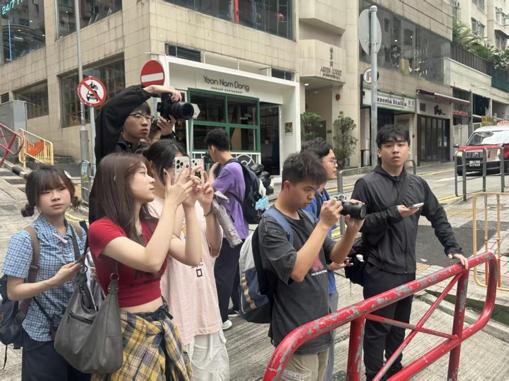 自由探索环节,同学们聚焦“城市文化符号采集”,在嘉咸街市集记录市井烟火,在PMQ元创方捕捉创意设计,在涂鸦墙前探讨街头艺术的传播价值。在中环金融区的摩天大楼间,对比“香港的国际化形象与本土文化韧性”,思考如何用新媒体呈现城市的多元层次。