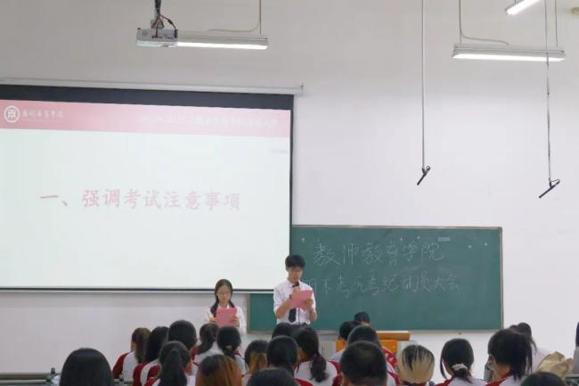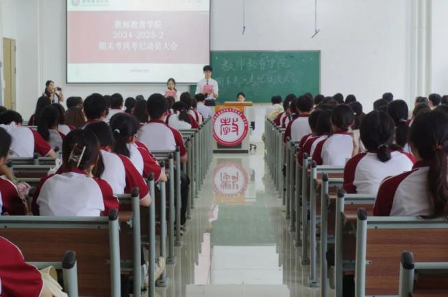 为强化考风管理,严肃考试纪律,教师教育学院于2025年6月10日在6号楼205教室召开期末考风考纪动员大会,筑牢诚信考试防线。学院辅导员曾锦鸿、赖智凯、李奕燕、叶志锋及各班级、学生组织代表参会。