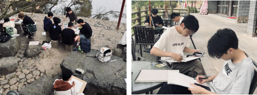 (学生在福建漳州云水谣进行绘画写生)