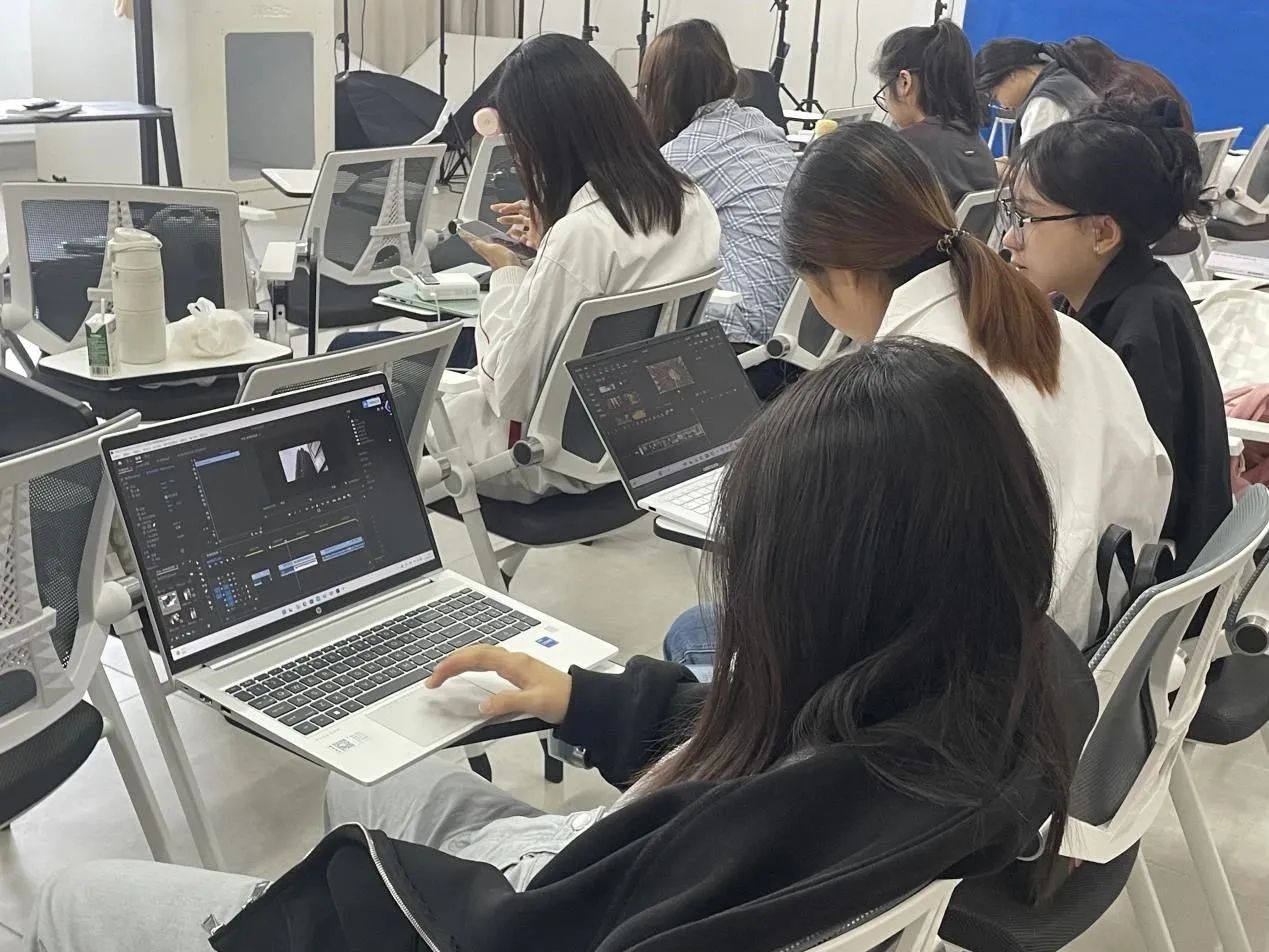(同学们在课堂上对拍摄内容进行后期创作)