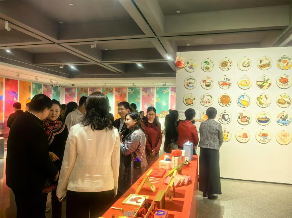 1月8日,创意与设计学院蒋明副院长一行前往深圳关山月美术馆,参加了本次文化遗产汇的开幕式。开幕式现场,我校的刺绣作品吸引了众多观展嘉宾的目光。指导教师李宏复教授和参展学生耐心地为嘉宾们介绍每一件作品的创作灵感、设计理念和刺绣过程。嘉宾们对作品的精湛技艺和独特创意赞不绝口,纷纷表示这些作品不仅展现了刺绣艺术的魅力,还让他们对粤菜文化有了更深刻的认识。