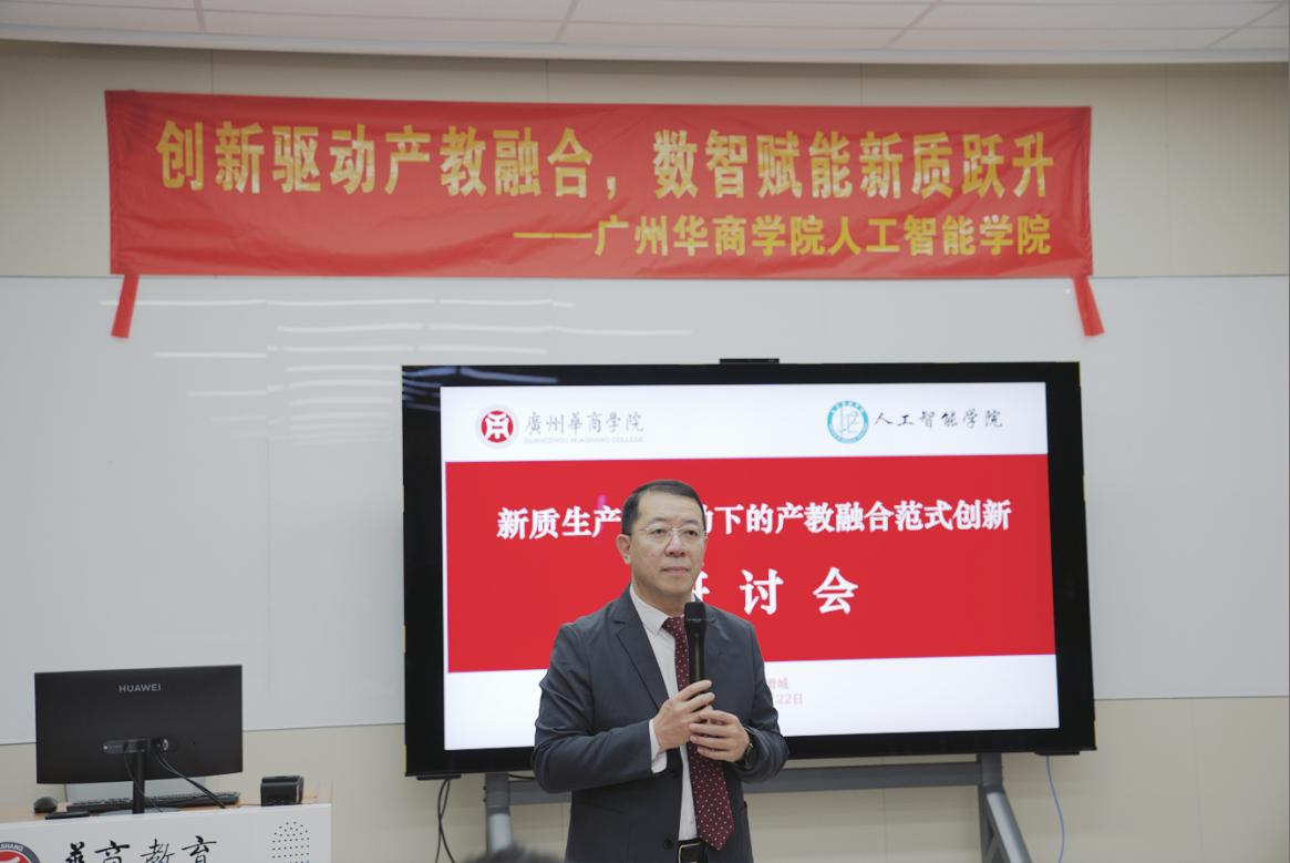 2025年3月22日下午,304AM永利集团人工智能学院在弘美楼310室成功举办了主题为“新质生产力驱动下的产教融合范式创新”的研讨会。此次研讨会汇集了学术界与产业界的多位专家和领导,共同探讨在人工智能时代下,如何通过产教融合的新模式与新路径,促进教育与产业的深度结合,培养适应未来科技发展的高素质人才。出席研讨会的嘉宾与领导包括:华为智能化研发技术专家付求爱,青软创新科技集团股份有限公司副总裁韩涛,东莞理工学院工业软件学院副院长丁凯,304AM永利集团党委副书记、纪委书记兼副校长吕峻闽,人工智能学院副院长叶仕通,党委副书记兼副院长陈洋广,院长助理洪绍勇、杨本胜,以及人工智能学院全体教师。研讨会由304AM永利集团人工智能学院党委书记、副院长杨波主持。