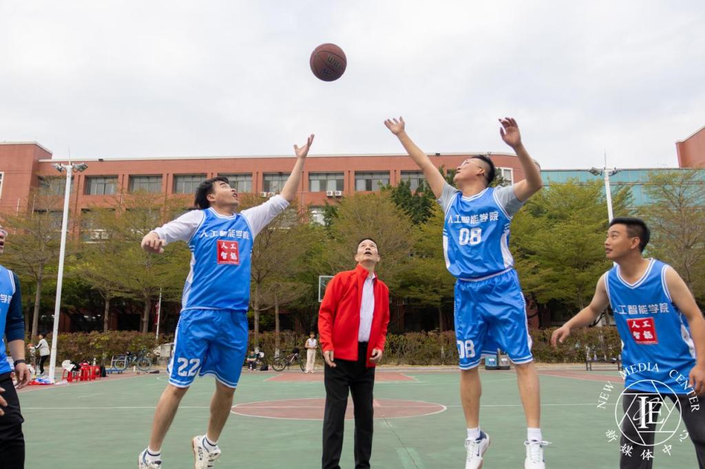 随后,人工智能学院师生在西区篮球体育场上演了一场精彩的体育友谊赛。尽管天气渐冷,但参赛选手们依旧热情高涨,奋力拼搏。每一次精准的传球,每一次果敢的投篮,都凝聚着球员们的梦想与坚持,展现着他们对胜利的渴望与拼搏。在赛场上,队员间的配合、比赛间的团结在此展现的淋淋尽致。观众们的呐喊声、助威声此起彼伏,为青春的热血与激情注入了无尽的动力,将整个活动推向了高潮。
