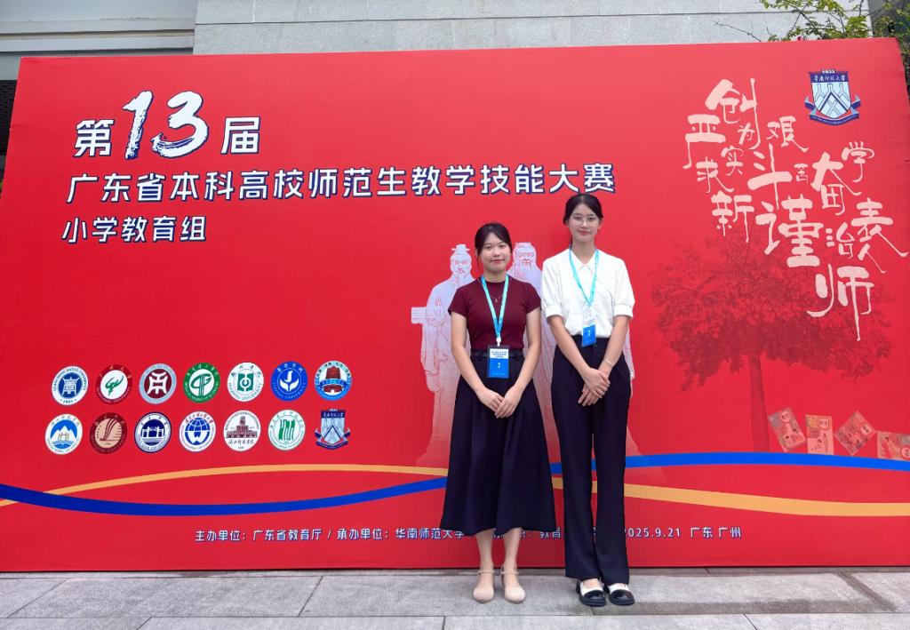 2025年9月21日,第十三届广东省本科高校师范生教学技能大赛小学教育组现场决赛在华南师范大学拉开帷幕。304AM永利集团教师教育学院小学教育系师生再一次在全省舞台上展现华商教院人的教学素养与专业实力。